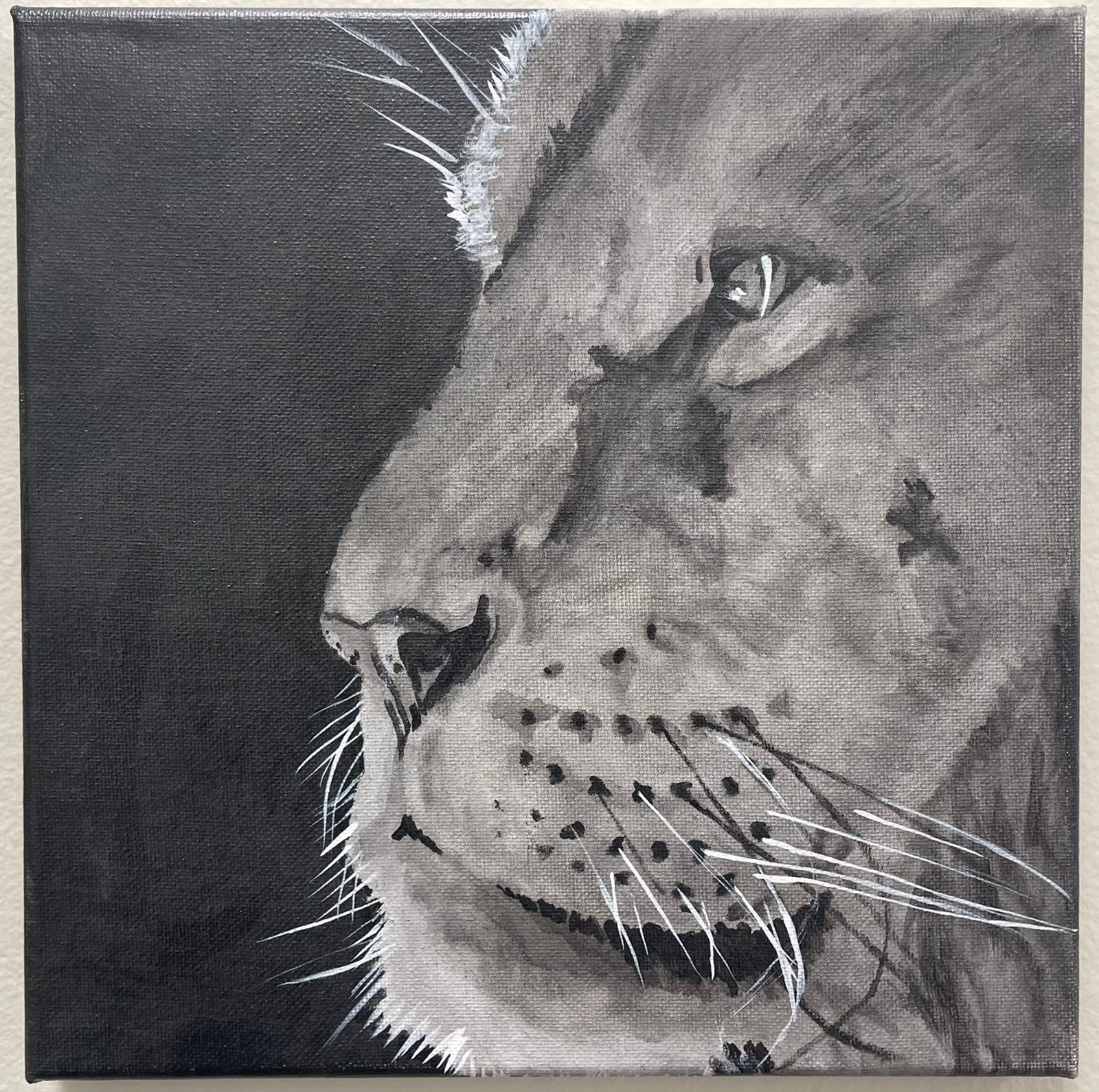 Lion FL acrylic Painting portray 10x10" metallic colour